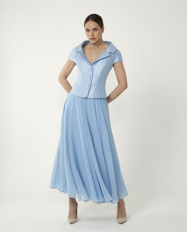 The chiffon skirt is an essential piece for those who appreciate sophisticated, timeless style. Crafted from lightweight chiffon, it drapes beautifully to create soft movement and an elegant silhouette. Its clean, sleek design makes it endlessly versatile—perfect for adding a touch of class to both day and evening looks. Effortless and refined, this skirt is a wardrobe staple that transcends seasons. Styled with the Lympstone Jacket.